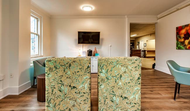 Picture yourself at Grand Wood Park. Imagine enjoying a meal with friends in our lovely full-service dining room, strolling around our wooded grounds and taking in our stately, brick exteriors, or enjoying some quiet time in your private suite or one of our cozy common areas.